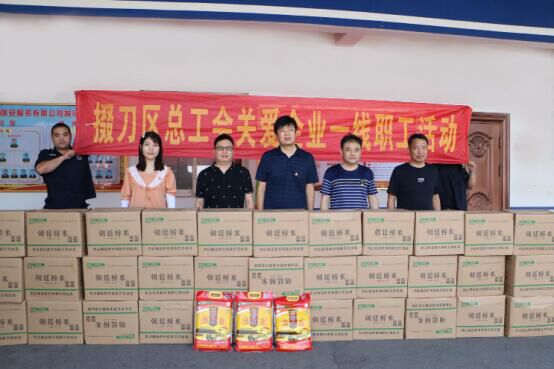7月14日上午,掇刀區(qū)總工會經費審查委員會主任謝玉峰一行到市城控集團所屬子公司市金盾保安公司開展“關愛企業(yè)一線職工慰問活動”,為員工送來168袋大米。公司主要負責人代表公司接收了慰問物資,公司班子成員參加了此次活動。