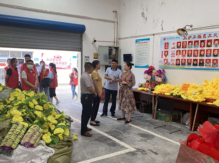 隨后,孟麗華帶領志愿者們參觀了“圓夢工場”的組裝車間、宿舍、愛心食堂和康復訓練室。其間,公司領導看望慰問了組裝車間的殘障人士,了解他們的生活狀況和精神狀態(tài),交流過程中,笑聲陣陣,氣氛融洽。慰問后,又開展了衛(wèi)生清潔活動,志愿者們幫助殘障人士整理床鋪、清掃垃圾……不懼烈日,干勁十足。最后,公司將幫扶物資食用油、大米和純凈水捐贈給“圓夢工場”。