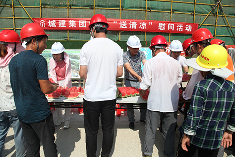 此次活動中,城建集團慰問小組準備了西瓜、風油精、礦泉水、藿香正氣口服液、毛巾等防暑降溫慰問品,一一分發(fā)到施工人員的手中。每到一處,慰問組都向一線施工人員表示親切的問候與關(guān)心,叮囑大家要做好高溫期間的勞動保護和防暑降溫工作,要合理安排工作時間,勞逸結(jié)合,一定要把安全和健康放在第一位。