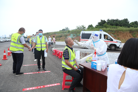 近日,我市疫情防控形勢持續(xù)好轉(zhuǎn),東寶區(qū)、漳河新區(qū)、高新區(qū)?掇刀區(qū)相繼解除封控管理,為安全有序?qū)嵤?fù)工復(fù)產(chǎn),全力推進項目建設(shè),按照市疫情防控指揮部和建設(shè)主管部門相關(guān)工作要求,9月2日,市城控集團所屬子公司天宇市政公司聘請龍泉社區(qū)衛(wèi)生服務(wù)中心醫(yī)護人員到楊柳路項目現(xiàn)場,為所有在建項目的管理人員、監(jiān)理、施工人員共181人進行了一次全員核酸檢測。