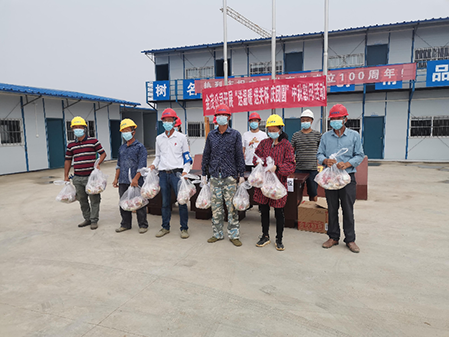 活動(dòng)中,金茂公司負(fù)責(zé)人帶領(lǐng)公司黨員干部,一一走訪各個(gè)項(xiàng)目,將月餅等慰問(wèn)品送到一線工人手中,實(shí)地查看了工地現(xiàn)場(chǎng)及工友居住環(huán)境,叮囑他們?cè)诠ぷ髦幸欢ㄒ獓?yán)格遵守安全規(guī)章制度,做好自身安全防護(hù),合理安排工作時(shí)間,把健康和安全放在首位。
