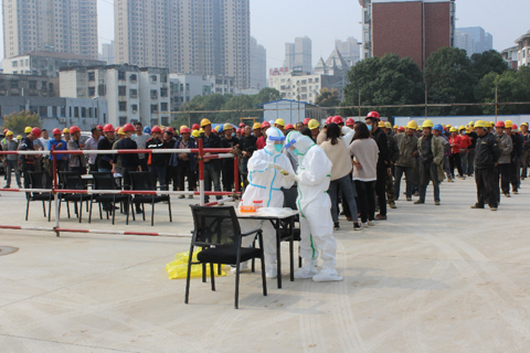 近日,為確保在疫情期間項(xiàng)目建設(shè)施工安全,結(jié)合上級(jí)主管部門指示精神,10月27日,市城控集團(tuán)所屬子公司建工集團(tuán)邀請(qǐng)掇刀人民醫(yī)院醫(yī)務(wù)人員到軍馬場(chǎng)學(xué)校施工現(xiàn)場(chǎng)設(shè)立采樣點(diǎn),對(duì)項(xiàng)目部全體職工和作業(yè)人員共計(jì)170余人進(jìn)行了一次新冠病毒核酸檢測(cè)。