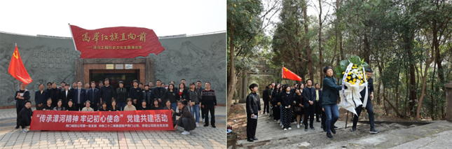 近日,市城控集團直屬子公司市城投公司第一黨支部和中鐵二十二局集團地產(chǎn)荊門公司、京琨公司聯(lián)合黨支部在漳河觀音寺烈士陵園開展了“傳承漳河精神,牢記初心使命”黨建共建活動,在追思緬懷、致敬先輩中增強黨性錘煉、銘記初心使命。