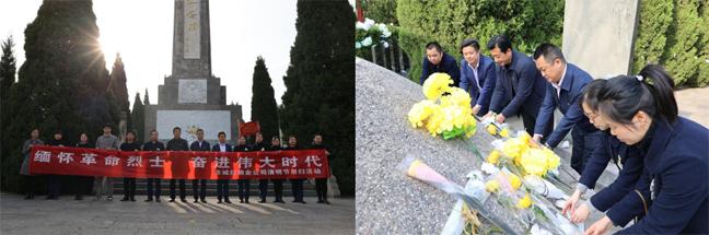 活動過程中,全體人員肅立默哀,黨員代表向革命烈士紀念碑敬獻花籃,全體黨員面對黨旗重溫入黨誓詞,莊嚴承諾將繼承和發(fā)揚先烈遺志,不忘初心,接續(xù)奮斗,不負韶華,再創(chuàng)佳績。