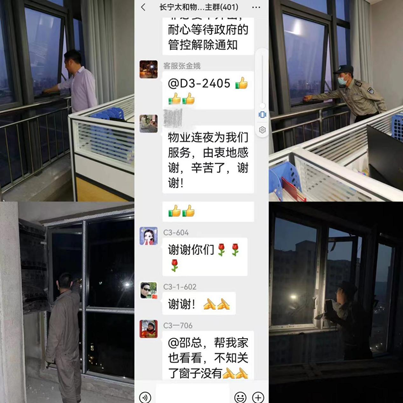 “尊敬的業(yè)主您好!面對突如其來的疫情,感謝各位業(yè)主的理解和配合!核酸篩查管控期間家里有困難、有需要幫助的孤寡老人或有需要照顧的孩子可以與樓棟管家或物業(yè)中心聯(lián)系。電話……”4月11日這天,這樣一條信息刷遍了長寧太和項目各個業(yè)主微信群,雖然內(nèi)容簡短卻句句暖人心。業(yè)主紛紛在群里豎起了大拇指,為服務(wù)中心一如既往的“真心、細(xì)心、關(guān)心、貼心、暖心”服務(wù)點(diǎn)贊!