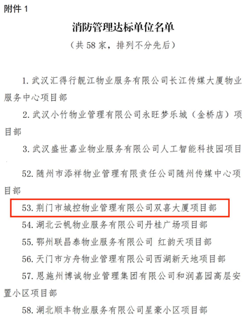 近日,市城控集團(tuán)直屬子公司市城控物業(yè)公司雙喜大廈項(xiàng)目服務(wù)中心被湖北省物業(yè)服務(wù)和管理協(xié)會(huì)評(píng)為“湖北省消防安全管理達(dá)標(biāo)單位”。在經(jīng)過(guò)嚴(yán)格審核、層層篩選后,該項(xiàng)目最終從湖北省眾多優(yōu)秀物業(yè)公司中脫穎而出,獲此殊榮。