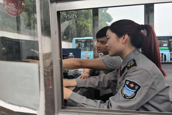 圖為停車場公司管理人員現(xiàn)場指導(dǎo)收費安保員熟悉系統(tǒng)