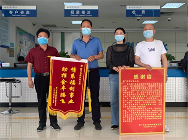 5月15日上午,荊門市金豐新材料有限公司總經(jīng)理袁家群和東寶區(qū)工商聯(lián)相關(guān)負(fù)責(zé)人來到市城控集團(tuán)所屬市供水總公司,送上感謝信和寫有“情系福利事業(yè) 助推金豐騰飛”的鮮艷錦旗,以感謝市供水總公司想企業(yè)之所想、急企業(yè)之所急,用實(shí)際行動(dòng)踐行初心使命,助推企業(yè)復(fù)工復(fù)產(chǎn)。