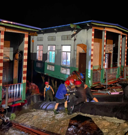 暴風(fēng)雨中往上調(diào)整取水臺車