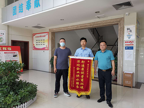 “感謝市供水總公司解決廠區(qū)管道漏水的大難題,你們辛苦了!”8月3日下午,湖北航特裝備制造股份有限公司(以下簡(jiǎn)稱航特公司)相關(guān)負(fù)責(zé)人將一面印有“打造最優(yōu)營商環(huán)境 深化企業(yè)供水服務(wù)”的鮮艷錦旗送到市城控集團(tuán)所屬市供水總公司。