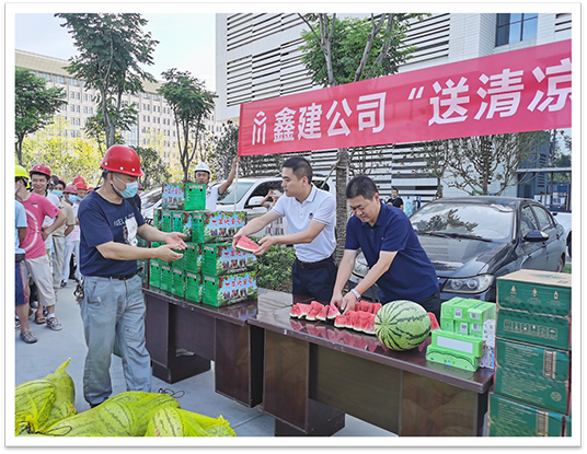 炎炎夏日送清涼,絲絲關(guān)愛沁心脾。夏季“送清涼”活動把防暑降溫工作落實(shí)到項目一線,這一活動一直是鑫建公司關(guān)心關(guān)愛一線員工,落實(shí)勞動保障制度的年度常態(tài)化工作,充分體現(xiàn)了鑫建公司的人文關(guān)懷,增強(qiáng)了企業(yè)凝聚力和向心力。(文:李曉威 ;圖:喬月)