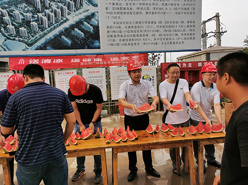 近日我市氣溫不斷上升,為保障一線施工人員的身體健康,確保項(xiàng)目施工安全有序進(jìn)行,8月11日下午,市城控集團(tuán)所屬湖北荊門城建集團(tuán)房地產(chǎn)開發(fā)有限公司副總經(jīng)理周敏、楊林鋒、馬明、張忠林等一行到該公司在建項(xiàng)目雙泉花園、龍泉大廈、東寶區(qū)安營山幸福片區(qū)一期C、D區(qū)工地開展了“送清涼、送健康、送安全”慰問活動(dòng),給奮戰(zhàn)在一線的施工人員送上了一份關(guān)懷,為高溫工地帶去了一抹清涼。