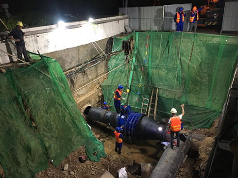 20日晚10時,項目現(xiàn)場管理人員強(qiáng)化工序銜接,緊盯現(xiàn)場監(jiān)督,施工作業(yè)人員挑燈夜戰(zhàn),施工隊伍兵分三路,密切協(xié)調(diào)配合,對部分鋼管的碰頭點進(jìn)行施工,管道切割、排水、吊裝、安裝閥門、焊接……施工現(xiàn)場井然有序,一道道工序推進(jìn)有條不紊。21日凌晨2:00突降暴雨,施工人員“硬核”表現(xiàn),克服惡劣天氣的影響,在雨水中連續(xù)辛勤作業(yè)近10個小時,施工于21日8時順利完工并通水。(文、圖:雷漢衛(wèi) 蘇克煒)